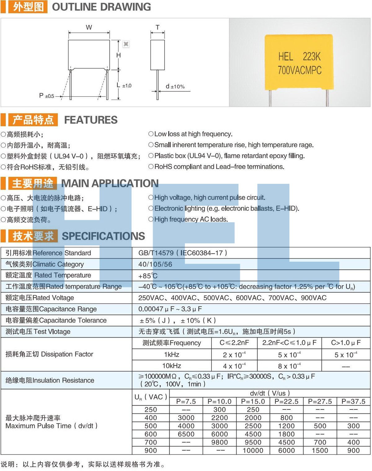 MPC 105℃塑料外盒金屬化聚丙烯薄膜電容器(MKP23)